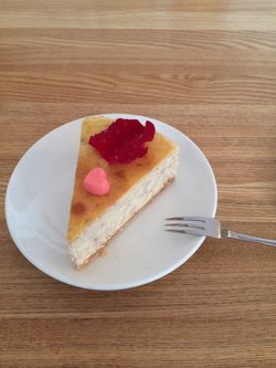 二层小楼。一层点单,二层是个露天小阳台。一层布置的很温馨,地方虽然不大,也不显得拥挤。点餐台在门口处,蛋糕切角美观整齐的陈列在展示柜里。头上小黑板上是用粉笔字写好的菜单,中英文双语点单~点了一份招牌的榴莲芝士蛋糕,加一杯莓果冰沙。久闻这里的榴莲芝士良心制造,也算是特意来拔草~下午天气不错,爬上二楼的露台晒了会儿太阳。楼上会有人吸烟,而且可能连不上wifi。台阶有点陡,如果是穿裙子的女生,就不建议上楼了~ 榴莲用量很足,芝士口感细腻润滑。切开芝士能看到不少榴莲果肉,味道很冲,但是也很容易腻。如果不是榴莲的狂热爱好者,一块蛋糕吃到一半可能就开始腻了。饮料的莓果冰沙,果汁打的冰沙,上层点缀的是桑葚和浆果。美中不足是有些发甜,和原本就比较腻的榴莲芝士相配,不能解腻,反而会加重甜腻感。这时候点杯茶看来才是正道。总体很满意,打算过几天去交道口的奶粉拔草。…查看更多