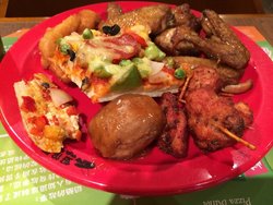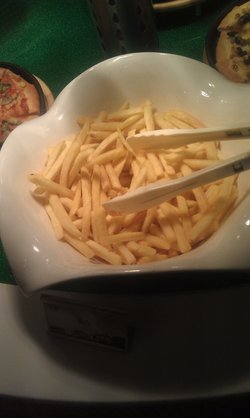 这家店就在劲松南路,周末出来玩来吃的自助餐,52元一位,性价比到是挺高的,环境还可以。披萨吃完,就开始吃小吃,他家的薯条是现炸的,蘸着番茄酱吃还挺香的。但是甜品有点一般,做的样子和口感都挺一般的。查看更多