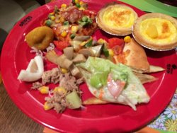 前几天秒杀了1毛钱的好伦哥,是新开业的劲松店,因为离家不算远就团购2张跟女儿去了。这家店坐车686等等车到劲松中街往南走到中街然后再找到劲松南路,就在南路的路口,很好找,挨着一家银行。新开业的服务态度很不错,拿号等位,等待期间验证了团购券,并且等待时候还给提供了饮料,很不错,然后大概等了半小时才轮到我们俩。楼上环境挺不错的,不算是很大,但是很干净,可以拼桌。以前吃过好伦哥,就是炸鸡匹萨之类的,但是这个新开的还有寿司和铁板烧,很意外呢。我们俩拿了虽然没有周围人家拿的次数多,但是其实也拿了不少,光水果就拿了很多。水果西瓜和哈密瓜都很甜,还有水果杯,很方便。匹萨好多种,比比格的多很多,喜欢海鲜的,饼底也不错。寿司感觉有一个大虾的不错,挺鲜嫩的虾肉。奶油蘑菇汤、西米露都不错,挺香的,喝起来很好喝,还有海鲜汤,里面真的有虾仁,很鲜美。铁板烧,其实都是一些小东西,小平鱼、小虾、小蛤蜊等等,不过海鲜比较多,味道还不错,蛤蜊和虾炒的都挺入味,不过就是平鱼没啥肉。查看更多