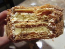 最近都是元祖,好利来,浮力森林轮换吃,天天都要有面包甜点的日子是这样的。还时不时的要自己做来吃。哈哈。继续分享两款。【芝士面包】这个面包真的是超级无聊好吧。我觉得还不如白面包好吃呢。就是一个圆形的白面包,上面放了点芝士,然后烤了之后,芝士就化了。然后面包上面就形成了一层不脆不香的芝士层。或许刚出炉的时候是脆的,但是第二天吃真的是有点硬的,还有淡淡的丑奶酪味道。实在是想不通,为什么会出现这种面包。太神奇。差评。。。 。面包里面也完全没有一丁点的馅儿。【半熟芝士】38元这款是好利来近期比较热推的一款新品蛋糕。半熟芝士现在好多蛋糕店有了相关产品,我还在青岛吃过半熟芝士卷呢。这个半熟芝士比起一般的重乳酪好轻盈许多,半熟芝士比起轻乳酪口感上又要嫩一些。会有咬一口就有点点爆浆的感觉。其实说得这么玄妙,我觉得还是更喜欢吃重乳酪。因为毕竟来说芝士味道淡了些,不是我这种重口味的人会喜欢的。不太接受重乳酪的厚重的人,推荐他试试半熟芝士吧,或许正好合她口味呢。这个一盒有5小块,一盒38元。还是不算便宜。一般来说新品都不会便宜的。连续两款都是芝士的,看来我是真的是芝士的铁粉啊。 …查看更多