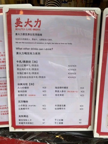 姜汁紅糖牛乳茶 / 玫瑰紅糖牛乳茶 / 姜之紅糖飲 / 洛神山楂玫瑰大紅瓶 / 熬夜人參水 / 小吊梨湯