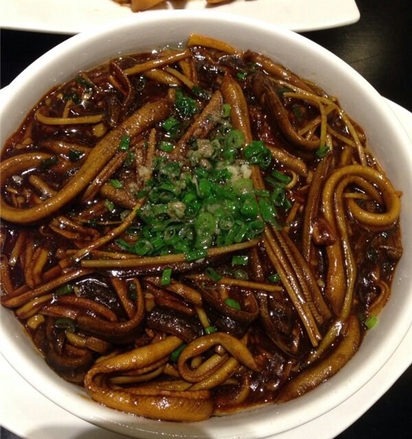 就在8号公馆院内,用现在的话来说,比较高大尚,环境仿苏州园林的建筑,屋内就能体现亭子和楼阁的感觉。我妈生日来吃的,我来这里就是冲着吃臭豆腐来的,做的非常好吃,汁调的也好,不是很咸,剁辣椒除了咸辣,还有微甜的口感,特别好吃。油条炒牛肉,里的油条特好吃,很酥,而且这道菜也比较有创意,用油条做菜,本以为会很油腻,没想到还挺香。龙井虾仁,很清淡,有茶香,口味棒,我妈很喜欢吃清淡的,所以很爱吃。毛蟹炒年糕,顺便当主食了,年糕很软嫩,但不是那么粘牙,属于甜咸口味。价格比较贵,人均150呢,比较适合特殊日子的请客吃饭。