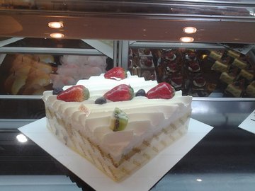 母亲节的时候季节特别限定的一款鲜奶油蛋糕,还是草莓慕斯口味儿的~特地预定了去拿的~上面的草莓很大很新鲜,和店里面的样品一样的~奶油是新西兰进口的~下面的慕斯蛋糕很绵密,有点点微酸,口感不错哦~两层薄薄的海绵蛋糕中间还有草莓果肉,料很实在的~