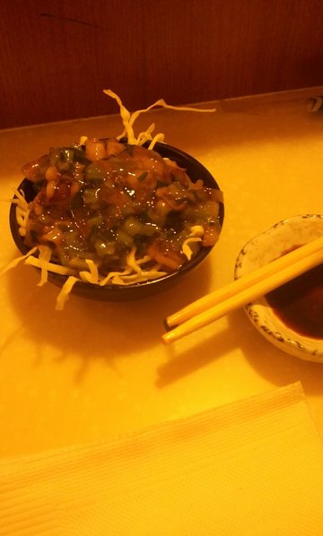宝寿司的芥末章鱼寿司我是最喜欢点的了,好像是22块钱的吧,章鱼上面还搭配一点青瓜粒的,芥末是那种透亮的芥末汁,不是芥末酱来的,章鱼肉的鲜味很重,即使加了芥末以后还是一样的。吞拿鱼炙烤寿司也不错,虽然觉得烤过以后有点浪费了鱼肉的鲜嫩口感,但是是变成了另外的一种形式了,也就是轻烤而已的,本身的汁水还是很足的。