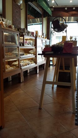 位于五官科医院对面,绿色的橱窗还是有些显眼的,而里面布置还是属比较可爱的风格。法式长棍面包12元,店员热情的询问是否要切片,提拉米苏22元,不是很甜,但却味道浓郁,是我喜欢吃的。里面还有甜点或者饮料,你可以点单后上二楼享用,推荐芒果布丁的芒果,很浓的芒果味道,我超级喜欢。