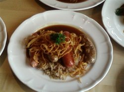 就去过一次,很难忘的。全体美国馆中外员工去那里吃了顿开馆饭。中午去的 每人一份 拼盘。 各种肉肠都不错,然后每人一扎啤酒。我要了黑啤酒。。。有点苦,和一般平时外面的啤酒不一样。听说是招牌的。盘子里的酸菜和土豆泥也不错。我那是大概是50,60左右一盘。查看更多