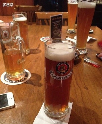 宝莱纳餐厅 Paulaner Brauhaus 这家店开在新天地广场北里,这里属于黄金地段,所以价格也很黄金。它家的黑啤是特别出名的,基本光顾的人都会点上一杯,啤酒入口很顺滑,香味浓郁,非常好喝。
