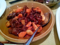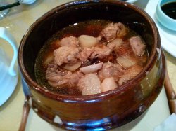 团购好实惠 小菠萝等級42013-08-313 瀏覽 關注 :)一直对宝轩渔府印象很好,之前在他家吃过两次,都感觉量大实惠,味美价廉的。他家的门面也看着挺气派的,主打的是红色和金色的色调,门口站着一对儿金童玉女,招财进宝的,看着就喜庆。牌匾是蓝底儿金字,看着有种传统的感觉,还挺有意思的。 :)店很大,一共三层,二三楼的包间比较多,一楼大多是三桌。一楼大厅面积很大,大多是摆放着四人桌和六人桌,一眼望去,那个敞亮啊。整体装修都是古香古色的,茶色的桌椅,桌子上是金色的桌布,看起来比较典雅。在一楼大厅进里面是一尊很大的金色米勒佛站立的雕像,很是有趣。一楼一边是散座,另一边是点菜的地方,这里没有菜单,都是看着摆着的菜品模型下单,倒是一目了然。再往那边看是海鲜区,水箱里面有着各种的海鲜,大多都是活的。看到了大龙虾,480元一只,小小震撼下。这边的厨房是开放式的,可以看到厨师们在里面忙碌,厨房环境一目了然,让人比较放心。 :)虽然我们是团购的客人,但是并没有降低服务水准和态度,服务员依旧是比较热情的。提前五天就预定好了时间,中午的时候更好顶一些,晚上定起来比较费劲了。虽然我们是周五这个上班日子的中午来的饭店,但是中午时间短大堂的人还是很满的,顾客很多,略显嘈杂。我们团购的是198元的套餐,原价说是要538元。这个套餐是可以全天使用的,六人餐,感觉还是挺值的。 :)野生船蒸黄鱼 ,原价138元。在一个挺大的白色盘子里面装着一条不算太大的黄鱼。鱼身体被一劈为二,鱼身上面插着姜片,这个看起来还是挺独特的。据说这是用古方蒸的鱼,看起来木有什么调料,就看到那几个挺立的姜片了。趁热吃了一下,出乎意料的好吃啊,鱼肉是蒜瓣肉,没有什么刺儿,吃着比较方便,适合老人和孩子。肉虽然不是很多,但是吃起来很是香嫩,不知道是不是提前用料腌制过的缘由,一点鱼肉的腥味都没有,反而是很浓郁的鲜香,鱼味很浓。跟自家做的蒸鱼相比,要好吃不少。赞一个。 :)罐焖牛筋肉,原价68元。看菜名以为端上来的时候是个小罐子,没想到是放在盘子里面端上来的。一眼看上去红通通的,配料有胡萝卜和山药,都做得比较软。牛筋肉出乎意料的软,炖得很透啊,而且调料的味道深入到了牛筋儿之中,吃着偏酸口。有点不太习惯这种偏酸味的做法,但是也还算可以。牛筋儿做得Q软,略略还有点点嚼劲儿,小孩子吃来看是极好的,老人也能吃。 :)剁椒加吉鱼唇,原价48元。也是红通通的一道菜啊,鱼唇就是鱼鳃那块儿一劈为二,然后加上很多红椒烹制的,吃起来咸辣过瘾啊。鱼唇的那块儿因为经常运动,肉质比较鲜嫩。配上红椒的辣味,祛除了鱼肉本身的腥味,更显肉质的鲜嫩了。在鱼唇下面垫着很多的粉丝,都充分吸收了鱼肉的滋味,吃起来也是很过瘾。这道菜略有不足的地方就是稍微有点咸了,适合就饭吃。 :)淮山焖子鸡,原价38元。一个陶罐上面盖着一张银色的锡纸,打开锡纸就能看到里面满满的鸡肉了。因为是子鸡,所以特别的嫩,鸡肉基本上是脱骨了,酥软可口啊,咸香入味。合着鸡肉一起焖的还有山药块儿。山药块儿更是焖得软乎乎的,这道菜很适合牙口不好的人吃,整体上都软软的,吃起来完全不费劲儿啊,而且肉质还很入味。赞一个。 :)干锅酱肉脆豆腐,38元。端上来很大的一份儿啊,占了桌子的很大地方哦。一个金色的镂空架子上面放着金属的小锅,架子里面装着小蜡烛,不断为这个小锅里面的食材加热。脆豆腐倒是没吃出来,锅里面不少的豆腐干的感觉,倒是充分吸收了酱汁的味道,这道菜偏辣,很多红椒在里面。肉啊,特别的少,是肥瘦相间的大肉片,切得很薄,过油后吃起来有点脆。在锅底放着不少的洋葱丝,估计是为了提味吧。可以这个小蜡烛的热量太少了,不能完全加热这道菜,导致洋葱的香味没能完全的散发出来,略感遗憾啊。这道菜就是胜在量大。 :)上汤海鲜菜心,36元。非常清淡的一道菜,装菜的器皿很好玩,好像一个大汤勺的造型。里面的上汤中好多根芥蓝,绿油油的,看着很是清爽,可惜的是菜心并不够入味,吃着稍微有点点硬了。里面还有一些蘑菇,蘑菇倒是很好的入味了,吃起来嫩滑爽口的。上汤和海鲜的味道和青菜的清香相结合,算是个比较健康的菜品吧。 :)本帮酱鲜鱿,38元。卖相很好的一道凉菜,鱿鱼是提前就弄熟了的,被切成了鱿鱼圈并且摆放得很是好看。本菜的鱿鱼提前腌制烹调完毕,鱿鱼本身已经有了一定的咸味,吃起来也是Q弹可口,尽显鱿鱼本身的肉感的特色。本菜还配有一小碟酱油,蘸着鱿鱼吃更烘托了鱿鱼的鲜美。 :)美极双耳,20元。白木耳和黑木耳摆在了一起,里面加入了醋进行调味,使得这道菜酸爽可口啊。不可多得的一道健康营养并重,口感与色彩齐飞的好菜。 :)像形核桃酥,半打,22元。特别可爱的一道甜品!小小的点心被做成了核桃的形状,点心表面还有这核桃特有的那种纹缕呢,真是很逼真哦。褐色的面皮烤得稍微有点硬,咬一口就可以看到里面五仁的馅儿料。吃着不是很甜,更多的是花生的香味和京瓜条的甜味。小孩子特别喜欢这个小点心,玩一会儿吃一会儿的。个人感觉吃一半是最好,整个都嚼下来,腮帮子感觉有点累。 :)棕香饭,6碗,12元。米饭盛在一个很可爱的陶瓷小碗里面拿上来,看起来古香古色的,陶瓷小碗的上面还有诗词的样子,很有韵味。白白的米饭上面装点着一小块儿橙黄色的南