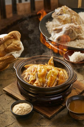 客家釀豆腐 / 客家豬肉湯 / 客家手撕鹽焗雞 / 客家三杯鴨 / 客家手工饅頭 / 生炒有機菜心