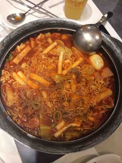 点的部队年糕火锅,感觉不仅便宜还很实惠,料放的真够足的,大虾很新鲜,个儿也大,火腿很好吃,有点微甜,还有豆制品,很劲道,小泥肠不是太喜欢感觉淀粉有点多,白菜放的不少,浸泡了汤汁后非常入味,还有洋葱特别提味,拉面是农心牌的,感觉不够吃的后来又加了一份,老板是韩国大叔,很热情的。查看更多