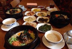 客美芝韩国年糕火锅我吃过很多次了,泡菜一开始就看着很有食欲,我最喜欢的还是那个泡海带,特别的爽脆,微微的透着一些酸味的,但是主要还是海带的鲜味为主。年糕火锅做的不错,辣酱的味道是有,但是没有改过人家锅底本身的味道,反正就是不会太辣就对了,年糕的质感蛮粘稠的,吃起来挺有嚼头的。石锅饭也不错,牛肉稍微有点生,刻意做成这样的,肉质很柔软的说,素菜搭配的比较多。查看更多