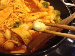 这大热天的吃这个可真遭罪,应该等凉快一点了再吃年糕火锅,热气腾腾的每人桌前一个大锅,虽然不见明火,但毕竟温度在这呢,最要命我还要的辣锅的,拉面放在锅里煮的很入味,各种配菜也很好吃,大虾火腿鱿鱼还都比较新鲜,鱼肠鱼丸什么的我也分不清,在锅里瞎吃,味道都还行,比较弹滑。查看更多