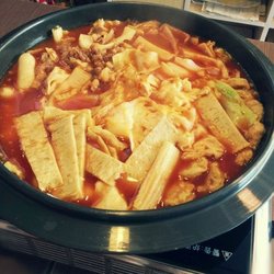 周末逛街跟女朋友来这儿吃的,就在天元港中心地下商业街地下一层,环境比较紧凑,一桌挨一桌的,不过人也挺多的,估计是冬天的缘故。头一次吃韩国火锅,我们点了牛肉年糕火锅,一大锅,感觉就跟东北乱炖似的,只是锅底是酸辣味的,料挺足的,肥牛不算多,年糕很多,各种涮菜可以单点。年糕多煮一会口感会更有弹性一些,也更入味一些,嚼着挺香,热乎乎的一大锅,还挺足实,配菜建议洋葱、豆皮、豆腐等,味道都不错。价格也不贵,2人消费100元不到,吃的挺撑。查看更多