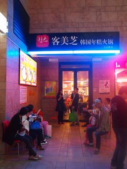 客美芝韩国年糕火锅 地址: 朝阳区东三环北路丙2号天元港中心地下商业街B1楼.一家韩国风味的餐厅,主要特色就是那个部队火锅,感觉比较新颖呢,适合三五好友一起过来呢,这个感觉很像中国的火锅,但是味道都是差不多固定的,甜辣的口味,主食可以搭配米饭,也可以搭配那个方便面,感觉都不错,放火腿的味道也不错哦,最好吃的还是那个年糕,口感糯诺的,狠筋道,很润滑,好吃。查看更多