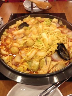 点的芝士年糕火锅,里面有牛肉和海鲜。牛肉很嫩入口很滑有点吃到韩国牛肉的感觉肉片切的很大吃到嘴里很过瘾,海鲜也很新鲜口感有些咸,年糕里面全都是慢慢的芝士吃到嘴里立刻能感觉到异国美食的风味,后加了一份辛辣面算是点睛之笔就像是吃火锅最后要面条似的,拉面下了肚胃里暖暖的很舒服查看更多