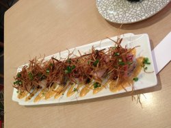 寿司名人久光百货B1楼,到饭点的时候基本久光百货下面全部爆满,寿司名人也是。三文鱼很新鲜,切得比较厚,吃起来实在。鹅肝寿司,看上去很肥腻,但是入口即化,肥而不腻,很香的感觉。火炙三文鱼,鱼子寿司也不错哦,推荐。查看更多