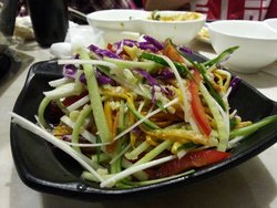 他家开业时间不是很长。但是生意很火爆。牛蝎子火锅是他们家主打。各种牛的部分,都用来涮。有直接涮的,有拌肉菜的,都很赞。我爱牛尾锅。鸳鸯配置。肉其实挺多的。涮多久都没事情。牛蹄筋很筋道。在辣锅里,味道很好。将军干拌牛肉,是不错的。直接吃火辣辣的, 吃不惯的话可以涮在锅里吃。蓝莓山药,给的真多!实惠。黄瓜蘸酱挺不错的。我爱这一口。清爽,下酒好菜。服务不错,店里有WIFI 就是信号不是特别好,有时候连不上。…查看更多