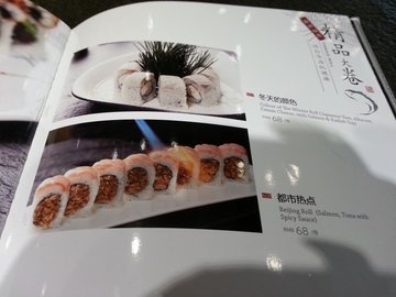 这家店就在金泉美食宫1楼,连锁店,日料里算是比较喜欢的一家店。寿司卷推荐奥林匹克2008,68元一份,这个色彩很鲜艳,上面是彩色的鱼籽,颜色就跟五环一样,吃起来也香,鱼籽一点不腥。