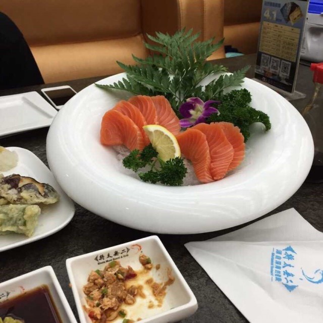 有一次我们仨到动物园那边的服装市场逛逛也顺便去个天文馆,中午在西直门那边的凯德大厦里面吃了将太无二,这家店地铁2、13号线到西直门出E或F口都可以就是凯德大厦了,在6层。面积还是挺大的,环境不错,日式风格,座椅之间的差距也不错,还有沙发椅,服务员态度总体都挺好的,还挺热情的。我们点了秋天的童话、烤鳗鱼、三文鱼刺身、国贸商圈卷、CCTV沙拉、地狱牛肉火锅、炸大虾天妇罗、烤三文鱼头、照烧柠檬鸡、地狱拉面、肥牛饭和鳗鱼盖饭。CCTV沙拉,里面很多蔬菜,还有鱼籽和芝士,觉得还不错,挺清爽的,鱼籽嘎吱嘎吱脆脆的。三文鱼刺身,很厚实、很新鲜,口感很美味,蘸着酱油和芥末吃。烤鳗鱼,腥味不大,挺厚的,酱汁味儿很浓郁,软嫩嫩的,入口即化。秋天的童话和国贸商圈卷,2种差不多,都是最上面有鱼籽和鳗鱼,鳗鱼同样厚厚的、软嫩嫩的,里面貌似一个有牛油果,一个没有,国贸商圈卷里面卷的是红薯,秋天的童话不记得了,反正都很美味,个头也都很大。大虾天妇罗,虽然比较油腻,还是很香的,炸的很酥脆,配了料汁去腻,大虾很大,整只的虾,旁边还有香菇、青椒、胡萝卜等等的炸蔬菜。烤三文鱼头,被劈成了几块,吃起来比较方便,烤的外焦里嫩,重新拼好个头还算大,挤上柠檬去腥去腻,鱼肉很鲜嫩,还撒了盐,有点咸味。照烧柠檬鸡,酸甜口,鸡皮深黄色是烧的,很嫩,鸡肉也很嫩,质量很好。地狱牛肉火锅,很热乎,辣辣的,量很足,里面很多牛肉片,非常鲜嫩,还有鱼板、青菜、豆腐、香菇等等,热乎乎的汤头很好喝,虽然辣,但是很浓郁,非常香。肥牛饭,我要的,配了汤和小菜,酱汁味道还好,牛肉片嫩嫩的,量很足。鳗鱼饭,女儿的,有很多鳗鱼,还有姜片和鸡蛋丝,鳗鱼不太腥,非常嫩,酱汁味道很浓郁,拌着下面米饭很棒。地狱拉面,老婆要的,辣辣的,有海白菜、玉米粒、鱼板、叉烧肉、半个溏心蛋和面条,面条挺筋道的,溏心蛋是煮的,比较嫩,叉烧肉好像2片吧,很大片,嫩嫩的,汤头很鲜美,辣辣的很爽。