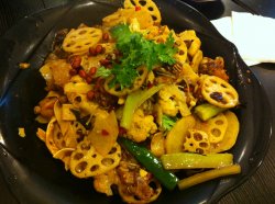 被装菜品的那个大碗所吸引,忍不住看看别人都吃了些什么,看似很香很辣,很有食欲,人气美食曾经做过介绍,现在很很多分店,也不知道哪家是最正宗的了,按照自己的口味选择食物,有蔬菜,豆制品,海鲜,肉类,选好了按不同分类称分量计算,七拼八凑的,2个人尽然加起来也要100多了,拌在一起味道都是一样的,辣辣的麻麻的还是不错的。查看更多