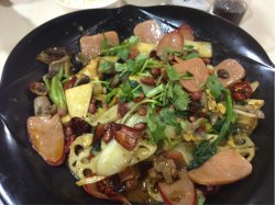 在日月光众多麻辣香锅中确实比较不起眼,因为是点评的团购去的,所以试了一次这家。感觉味道还是不错的,团购价格非常的给力。很大的一个锅子里有虾,海霸王丸子拼盘,培根,鸡腿肉,红肠,腐竹,木耳,金针菇,莲藕,小青菜。烧在一起味道很香很好吃。原来这是川西特有的,下次要试试别的东西点一起。查看更多