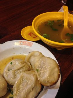 小杨生煎自从小时候就喜欢吃,当然以前只有3、4块的小杨生煎现在都涨到6元一两了,不过味道还是很赞的,一般买上2两生煎,虽然要排队但也乐在其中,这家小杨生煎在日月光的B2层,还是挺好找的,买了生煎后倒了碗醋,占着吃,外皮上的芝麻很想,里面有汤汁,肉满嫩的,生煎底特别的好吃呀,喜欢吃~~查看更多