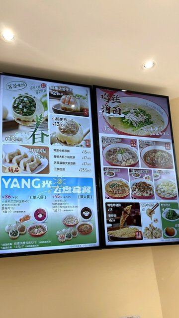 小杨生煎 / 鸭血粉丝汤 / 特色酸辣粉 / 鱼丸汤 / 蟹黄大虾小杨拼盘生煎 / 油豆腐百叶包粉丝汤