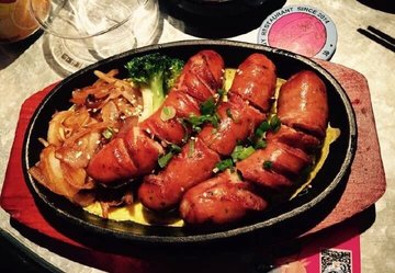 自己吃过这家店了,陪朋友再来吃一次,都是我点的菜哦,烤肠好吃的,这个一定要吃呀,烤的很透的,外皮特别的脆,但是完全没有缩水的感觉,口感依旧保持了猪肉的弹性与鲜嫩,就连带着旁边的泡菜也很好吃呢,芝士炒饭也是必吃的,米饭真的很糯,放了芝士吃起来口感糯糯的,最完美的吃法就是吃一块肉吃一口饭,感觉整个口腔都是烤肉的味道,肉很多的,两个妹子吃无压力啊。