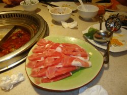 和朋友一起喜欢吃这里的清汤麻辣鸳鸯锅,我特别喜欢吃麻辣味,各种肉和蔬菜在麻辣锅里涮过之后很入味,麻麻辣辣吃的特别过瘾。这里的羊肉很好,特别的薄,放入锅里很快就熟了,入口即化,味道很好。酱爆牛肉丸也很好吃,很满意的一家火锅店查看更多