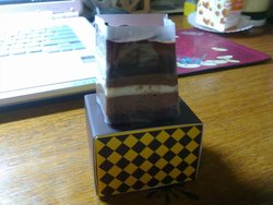 有一次我在微博上中奖了一份ebeecake家的一小块蛋糕,跟老爸一起去兑换了。这家店在798艺术区里面,这里坐车403、402、405、991等等车到大山子路口南下车就是,进入一直走就是工美楼了,不过798有好几个入口,需要进入最北端的那个入口。这家在工美楼3层,这里一般很少有人,因为如果吃蛋糕可以打电话配送的,并且这里也是个像是生产的工厂似的,一个小屋子,不过微博中奖的需要自己来取。店员帮忙找到我自己名字之后,店员到里面去拿去了,我们俩就坐外面等着,大概20分钟店员回来了,给了一个小口袋,一个小方盒里面一块蛋糕,还有蜡烛什么的。店员态度很不错,帮忙找名字也很有耐心。另外小屋子的环境比较小,不过环境还比较好,挺干净的。回家把小块蛋糕给吃了,味道很不错,巧克力口味的,浓郁的巧克力,两边都是巧克力,中间有层蛋糕,松软的蛋糕,以后有空想要订购一个。查看更多