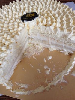 地址在酒仙桥路2号798艺术区工美楼3楼,五环内免费送货,头天定的,第二天就送来了,榴莲味的蛋糕,也是第一次尝试,口感很好,蛋糕有淡淡的榴莲的清香味,口感很细腻,蛋糕质地很轻柔,冷藏过后口感更胜一筹。很不错查看更多