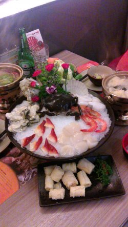 这家店位置蛮不错,店面装修也蛮时尚的,和朋友去田子坊逛好,就顺便去他家晚饭。锅底不是大火锅,是一人一份的小火锅,我点的是番茄牛尾骨汤底,酸酸的番茄搭配熬的浓浓的骨头汤底肉肉的话,五香肥牛拼黑猪肉一份,牛肉和猪肉都兼顾了,肥牛蛮好吃的,黑猪肉没吃出来,只是感觉普通猪肉而已啦什锦拼盘一份,里面包换了蔬菜、菌菇、玉米、木耳、老豆腐、番茄片、萝卜、厚百叶,基本常吃的火锅素菜点上这样一份就全都概括了鲜丸拼盘一份,其中包含了午餐肉、猪肉卷、龙虾球、潮州丸、炸腐皮,这一份的话肉类的量就不多了,丸子就三个而已,倒是蛮弹性的,面粉应该没怎么加,午餐肉就两片,炸豆皮很好吃哦,推荐!!价格属于偏贵的店铺,这次我没有点海鲜,点了海鲜的价格还要往上加,如果只是普通想吃小火锅的话,去其他火锅店的话会更实惠一点哦…查看更多