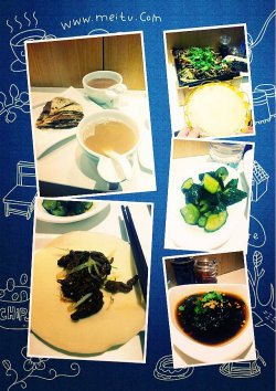 HM打折准备去瞄两眼,于是先到这家填饱肚子随便吃吃~到店现团了两人套餐,不用预约还挺方便的~上菜速度超级快,刚下单凉菜立马端上,紧接着铁盘烤肉也上桌了刚!肉肉是温的不像是现炒,吃着还有点肉腥气,不一会就给空调吹凉了,更没法吃了。。。8过两个凉菜米道还不错,酸酸辣辣满开胃的~肉饼点了海味的,猪肉馅合着虾米还蛮对我胃口的,最终偶们不负众望把所有肉饼一举消灭咔咔~再说汤品,不喜欢一口咸一口甜所以果断弃绿豆汤,跟亲故一致滴都选了酸辣汤~跟肉饼果然是绝配,夏天吃吃蛮不错哒~查看更多