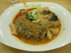 在五棵松家乐福门口,蓝色的店面,里面是长条桌凳,点餐区很整洁,一改麻辣烫脏乱差的形象可选菜品不是特别多,但是我爱吃的几样都有了哈小料很好,芝麻葱花都很赞而且可以看着她们煮麻辣烫,这样就完全打消了我对卫生的顾虑缺点是,菜品相对贵一些,而且价格一直是在上方的电视滚动播出以至于我去了至少5次才记得所有菜品的价格豆腐土豆什么的都是1块,肉类和粉丝都是3块,小料2块去家乐福逛逛的时候顺便吃下,挺好的,