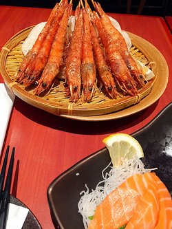 有机会得到的了一张130元的代金券就和朋友来这里吃的日式料理 环境主要是以暗色调的为主,刺身拼盘还不错 四个甜虾 四片三文鱼和两个扇贝 也够我们吃了 都很新鲜 肉质很鲜美,牛肉火锅不错分量很满足,培根卷肉好吃很爽口鲜嫩的