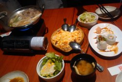 是日本菜哦 牛肉火锅还不错 呵呵 牛肉很嫩的 酱汁也比较有风味 石锅拌饭个人觉得不是很好吃 锅底比较老 不脆 食材的话 还算新鲜的 装修一般般吧 人很多 有时候要排队等位子的呢 本人不喜欢等 呵呵 所以总是早点到 色拉的话价格贵了点 而且量也不是很多 哎 总体来说 一般般吧 难般吃吃就行查看更多
