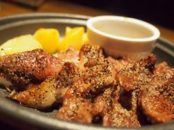 和风牛小排陶板烧,本来以为字写错了,是铁板烧,不,是陶瓷的,蛮特别的,端上来的一盘牛小排还是吱吱作响的,香味扑鼻而来,一刀下去,叉在叉子上,放到嘴里,好好吃哦,没有滴血,也不老,肉嫩且多汁,果然没有点错。还点了半份凯撒色拉,上面的蛋不是半份,是一个,生的鸡蛋,溜汪的,很嫩很新鲜,蔬菜很多的,半份够吃了,拌起来的味道很出色,我很喜欢。