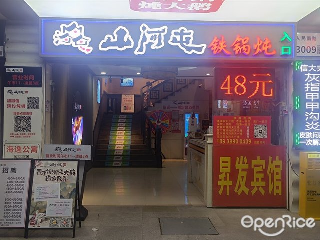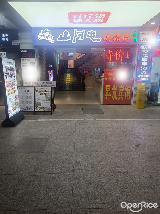 山河屯鐵鍋燉 (新安大廈) (深圳) 網址: https://s.openrice.com/KtbS0W07WXO00 地址: 深圳羅湖區國貿人民南路3009号新安大廈2層 電話: +86 18025470059