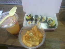 貌似这家最初的时候是在日月光广场地下那种类似大排档的那种,就是图中那样的。吃的是炒年糕,味道很不错,年糕很筋道,很有嚼劲,酸甜味道非常喜欢,另外不是太多的汤,恰到好处。寿司卷是现做的,很不错,用的食材都很新鲜,就是一盒有点多,感觉吃不太完的说查看更多