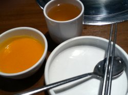 朋友生日请客吃的,环境挺不错的~里面可以点菜也可是吃烧烤~免费南瓜粥,味道很不错,服务员态度也很好哦,南瓜粥吃完了还能续,呵呵~~古法酱汁薄片牛肉、南瓜粥、迷你石锅拌饭很好吃,土豆泥也又送哦,不过吃了不过瘾,还是会点上一盆土豆泥,雪浓汤味道也很好哦~~吃过之后还想再吃呢~~~以后还会自己去的。查看更多