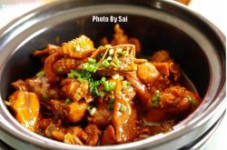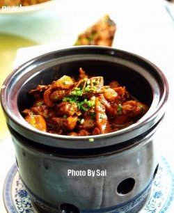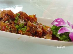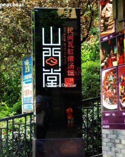 我们一行9人相约来到这里尝鲜啦,哈哈。 山间堂的这家分店坐落在淮海路上,门面不大,二楼是散坐,三楼有包房。 进门见到的是用心设计的环境,以暗红色为基调,满古色古香的,本来想拍几张回来看看的,结果人家不让拍,呵呵,没办法哦。 吃饭前先喝汤,能够延年益寿永葆青春,这可是养生之道啊! 猪脚黄豆汤:黄豆和猪脚煮的非常酥烂,用碳来慢慢炖的,汤很入味带着黄豆的香味,很好喝,真的很好喝的,要不是刚够一人一碗,我还想喝两碗啦!原汁原味的,不象别家有很多味精的样子。点了几个冷菜:冰糖南瓜红枣、豆板酥一般般的,味道马马乎乎,不过可以解辣。川北凉粉:很好吃,凉粉带韧性的,还有花生碎,很香的,就是有点小辣。农家待客豆腐:好吃的,特制的卤水豆腐,味道都进去了,象俗称的老豆腐,口感绵韧,有浓浓的豆香味,地道的农家菜本色。也是唯一不辣的一道菜,偶很感兴趣,呵呵。青鱼:好象是鱼干吧,辣辣的,看上去还可以,我不爱吃没吃。农家三杯鸡:鸡肉烧的很入味,量也很足,就是咸了点,可能是特色菜的关系。啥个笋丝:味道还可以,吃几根去去油水,微辣的,量也满多。口水鸡:呵呵,这个又是鸡,好象有点撞车哦,不过不是太辣,味道还不错的。啥泡椒牛肉:味道倒是不错,只是这肉感觉有点老,可能是土菜的关系吧,呵。垛椒牛蛙:很流行的一个菜,不过偶怕辣,没吃,据说牛蛙少了点。啥蒸肉:哈哈,那些漂亮的妹妹看到上面的花纹,居然没人敢吃,就我一个人吃掉了一半,味道当然是可以的,只是一个人吃太没劲了,不能光我一个胖啊,对吧。那个啥芋艿:好吃的,芋艿很粉很糯的,微辣,带点芋艿本身的甜味。 觉得他家辣的菜满多,可茶水却要收钱的,我们点了鲜橙汁.马蹄水,马蹄水有点偏甜,不过可以帮我解辣,另外,纸巾也要收钱的哦。 不过,我们这一顿人均下来每人才50元,不算太贵。临走还送了我们200元优惠券,消费满120元可以抵用50元的。…查看更多
