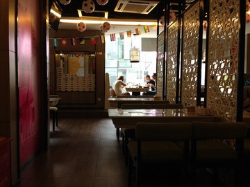 这家餐厅位置还是多好找的,一说观音桥挨到新世界的未来国际的后面就好找了。光看地址是有点晕头转向的了。去的时候没有看到有电梯是可以上去的,走到他们家的另外一个门了,还好这个门的标志还挺大的。相当于他们家的后面了。去的时候是周日中午的饭点,没有想到人还挺多的了。环境来说,感觉以白色为主的装修。桌子这些也是白色的。感觉还是觉得挺简单的。偶然发现他们家的镂空式的屏风,先前是感觉还挺好看到的,居然又他们家的LOGO。还挺特别的哦!一元秒杀的他们家的双人午餐。有个自助区域,有例汤,小吃,水果。这个还挺好的,顺便吃。感觉汤的味道还是可以的。香辣方鸭煲16元,味道是不错的,里面有板鸭,吃起稍微有点点咸,辣味还是挺辣的。感觉不错。就是他这里没有水喝,有饮料提供,但是需要几元一位的那种,我万一不喝饮料,不喝冰的,那就好玩了。肉沫茄子煲8元,这个菜挺入味的,好吃。难得在外面吃到好吃的肉沫茄子。他们的煲里面有个很特别的地方,里面都放有一块鹅卵石。感觉很奇怪,就问了问服务员,回答说这个势头是他们专门在什么地方整回来的,放在菜里,吃了可以美容哦!这个美不美容我就不知道了,但是觉得应该没有坏处吧!他们家的菜总体来说味道蛮不错的,而且价格相对于观音桥商圈来说算便宜的了,还是平民化的消费哦! …查看更多