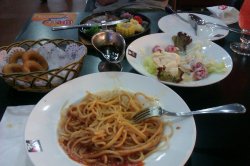 巴贝拉可以算是西餐厅吧,这个应该是我请BF吃的一顿饭吧,是不是第一次请人家吃饭啊~应该找个高级点的,可是那天实在是走不动了~就来这里,因为人不多,不用等位,可以好好休息下,他家的服务比较差劲的,不管什么时候不管人多人少,上菜速度都是超级肉的,这个很多同学想必都是深有感受吧~当时因怕长痘~所以只吃非常非常素的意大利面,感觉超极素啊,连肉酱都没有看见呢?BF点的应该是牛排,大概45还是48一份来着,这个倒是不贵~感觉他家的小吃其实比较好吃,主食味道真心的一般~查看更多
