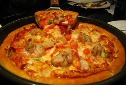 平價意式簡餐 lady miumiu等級42010-11-03 關注 同薩莉亞有異曲同工之妙哒店,比必勝客便宜,當然味道也有差。烤雞翅:外焦裏嫩又香又入味!難怪是招牌~藍莓果醋:點評推薦,可是覺得一般般诶,還不如朋友點的蘆荟奶昔好喝芝士香腸焗飯:以它家平均尺寸來說算是比較大份吧,味道也還行,芝士狠夠分量就是香腸切得好薄好薄海鮮燴飯:燴飯個毛線!茄汁放得再多一點點就是泡飯了!味道比較腥,吃不慣的同學可能會覺得狠難下咽酥皮菌湯:好喝!酥皮美!湯也美!XXXX大拼盤:完全是以上的菜沒填滿肚皮再要的。。。裏頭有炸熱狗腸、炸鱿魚、炸洋蔥圈和鴨胸肉串,還有一大堆用玉米面炸的薯片(?)油狠重,薯片一開始吃滿不習慣的,慢慢就覺得玉米面狠香熱狗腸底下塞了一根骨頭,可能本意是想讓大家拿著骨頭啃熱狗由此做出仿真的火腿感?但我覺得好惡心哦。。。不禁就覺得那根骨頭像是別人啃剩的= =總之,這裏面算是吃pizza狠實惠的地方,每樣東西都不貴,可以多點一些嘗嘗鮮。平時據說要排隊的,要想吃就得早來占座哦。環境不錯,不過就是顯得吵鬧。服務員還是隨叫隨到的。…查看更多以上食評乃用戶個人意見 , 並不代表OpenRice之觀點。讚好分享平價意式簡餐 巴贝拉 https://s.openrice.com/KtbT100kXG000檢舉 張貼 評分3味道3環境3服務3衛生3抵食推介美食正正正正人均消費¥50