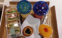 *泡芙* 放在冰箱里冷冻后好吃呦,奶油冰冰滑滑的^^*布丁* 最底层的糖浆太甜了,其它蛮好吃 13元/个 小贵〉〈*甜甜圈* 与众不同,切开后放进了奶油,热量更高了=、=*金枪鱼三明治* 伴随着黄瓜吃起来很爽口,营养价值高,吃多了有点腻~*法棍* 硬!硬!硬!O.O*花茶* 乌龙茶不好喝,╮(╯▽╰)╭ 甜莓茶越喝越甜~O(∩_∩)O另,看着肉松面包好大个,价钱合理,以后来尝尝查看更多