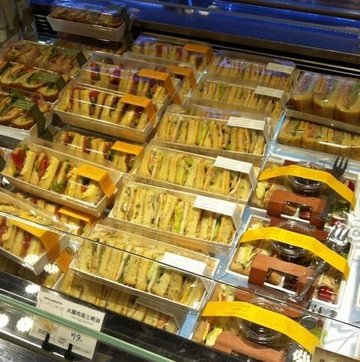 巴黎贝甜也算是连锁型的,它家在很多热闹的地方都开了店铺,生意非常不错。这家店离好友家比较近,所以经常会光顾这里。个人比较喜欢它家的三明治,它家的三明治种类很多,个人比较喜欢它家的鸡肉三明治,它家的三明治面包切的很小块,面包很松软,每个三明治内都放了好大一块鸡肉、番茄片和生菜,让人每口吃的都非常满足。