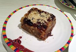 这家店就在远洋未来广场6楼,新疆菜,但是环境特别漂亮,装修的挺精致的,而且餐具也挺漂亮的。推荐这道布力布力切糕,一小块28元,虽然有点小贵,但他家的切糕做的挺特别的,本身就是微甜的,所以不用蘸糖就可以吃了,而且糯米蒸的特别粘软,上面还有很多的芝麻,非常好吃。查看更多