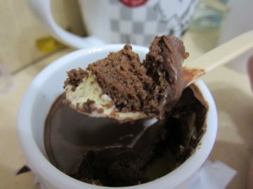 这家布丁做的很赞,布丁不是很大,用很q的玻璃瓶装着,挖一勺放入口中滑滑的嫩嫩的,口感极佳,焦糖布丁上面的焦糖层厚度适中,敲开来挖着焦糖片和布丁一起入口,焦糖特有的香气和布丁的软嫩口感融合在一起,非常美妙。