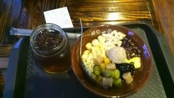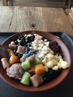 没有吃中饭哦,想着还有个芋圆没有吃,就跑到乐和城去吃了。话说吃过很多家的芋圆但是单单没有吃过这一家。其实想来芋圆也不是很好吃的,因为在广东省的时候哪里的糖水也是一般般啊。可能也是我嘴巴挑,我芝士觉得我麻麻做的最好吃。主打红豆芋圆(热)18大洋一份。这个天气我吃热的我牛屎不牛屎。不想吃冰的,我特别怕拉肚子。里面有芋圆+红豆+花生+珍珠果总的来说芋圆不腻,花生很粉,红豆汤很甜。但是分量很少,基本都是汤。18一份真心贵。…查看更多