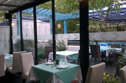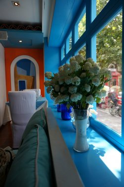 这家店一直会路过的,被那个白墙蓝顶的建筑所吸引。这次托了《爱抢购》的福终于来光顾了。9.5入了它家的青口贝,大概五点左右到的,店里正好很空,下午茶结束了差不多了,晚餐还没有开始。门口有拍婚纱照,楼上有那么几桌,楼下就一桌而已。店是纯希腊的风格,白墙蓝顶,店里的布置也基本以白蓝为主,很清新的风格,看着很舒服,可惜爱抢购的客户不能坐二楼,各么就坐一楼好来,靠窗也蛮好,正对着吧台。给了验证号码,接着看菜单,额外点了米饭布丁,15元,都说好吃,各么总要尝试下哒。米饭布丁先上的,很很小一个,其实就是米饭粒混布丁,米饭偏多,布丁偏少,饭的口感有点点硬,上面洒了肉桂粉,很香,不过,味道倒是蛮好哒,不腻,淡淡的奶香,好吃。青口贝等了很长时间才上的,一个锅子的确吓到我了,打开一看,很很多青口贝哦,量太足了,可供2-4人实用呢。青口贝大小不一,感觉有点不新鲜,值得称赞的属那锅汤,奶油味的咸的汤,好喝哒,后来因为吃不掉打包回家了,正好买点面包隔天弄弄热蘸着吃蛮好。汤里有青的和红的辣椒丝,胡萝卜丝,樱桃番茄,洋葱,芹菜等,超级实惠呢。…查看更多